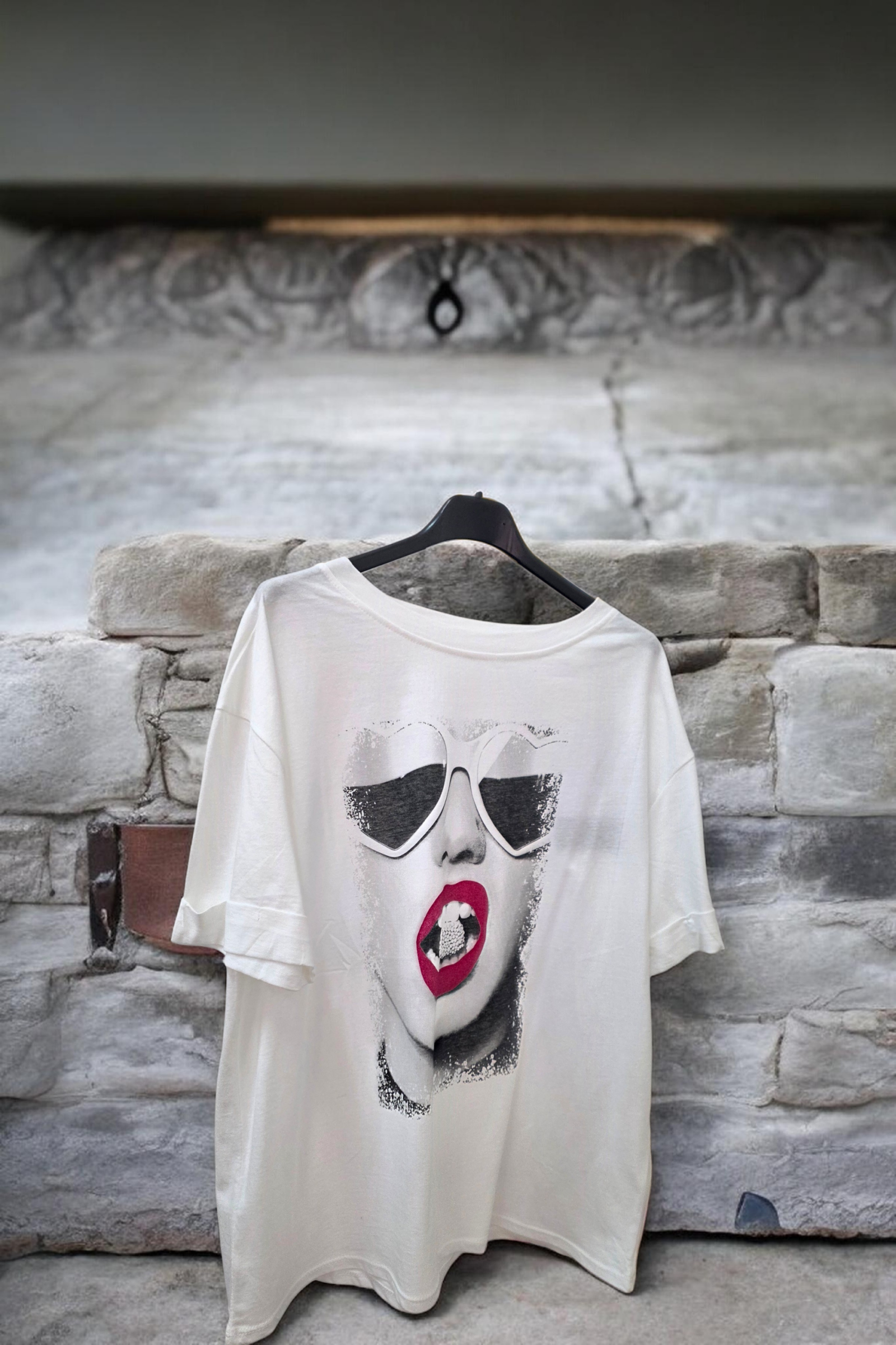 T-shirt με ασπρόμαυρο σχέδιο – Γυναικείο Oversized Μπλουζάκι